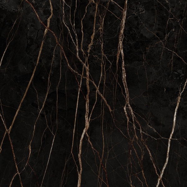 Deep black, pierced by subtle ochre and brown threads, which cross over one another in their path. A tectonic and organic lattice that shapes spaces with a sophisticated, minimalist and elegant halo.